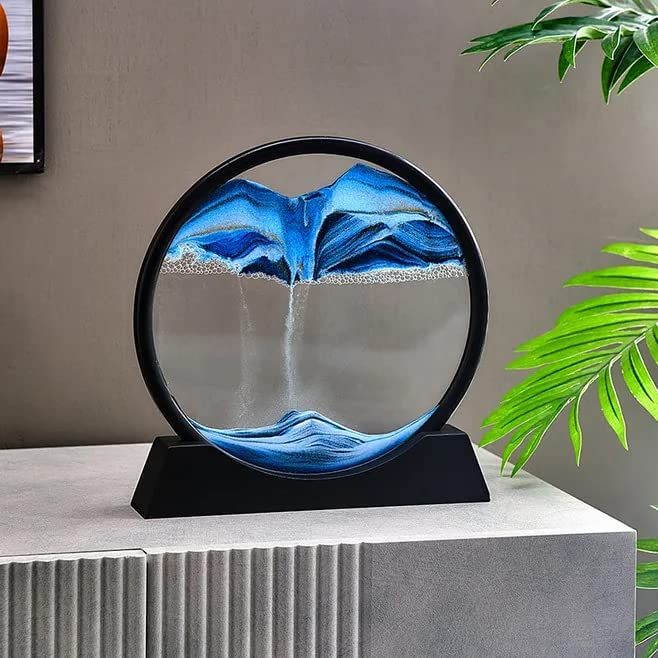 The LED Round Flowing Sand Art Lamp creates a soothing display of falling sand that forms beautiful landscapes, offering a relaxing decorative piece for homes, offices, and studios. ✨🌙